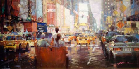 A Day in New York City by Jian Wu 10" X 20" Oil on Canvas