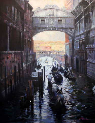 Venice Traffic by Jian Wu 28" X 22" Oil on Canvas Sold