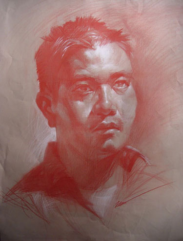Young Man with Short Hair by Jian Wu 24" x 18" Brown Pastel on Toned Paper