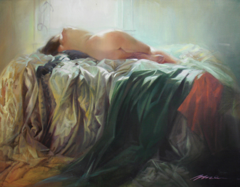 Light • Figure • Drapery II by Jian Wu 22" x 28" Oil on Canvas Sold