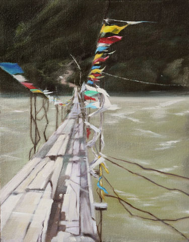 Tibetan Bridge by Elizabeth Liu 11" X 14" Oil on Canvas