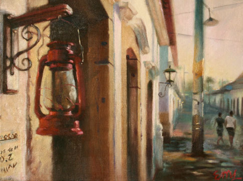 Red Lantern by Emmeline Lan 9" X 12" Oil on Canvas